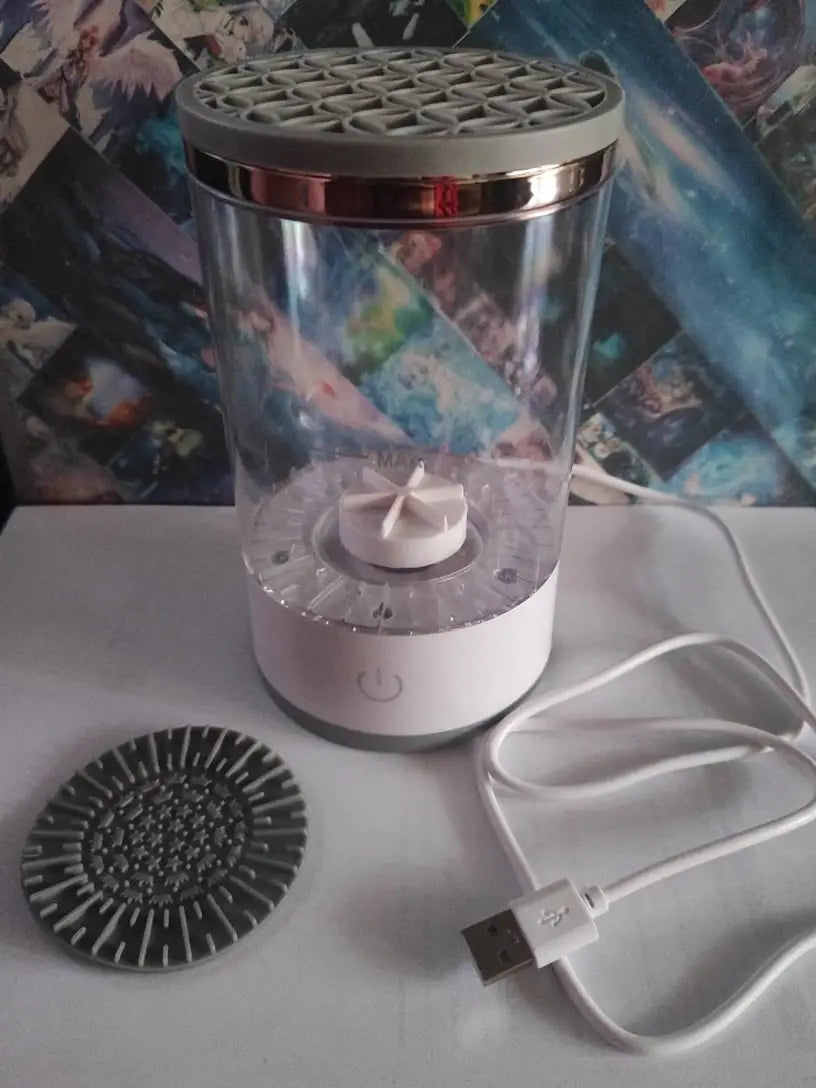 Incluye la base eléctrica, 8 adaptadores de silicona para diferentes tamaños de brochas, un bowl desmontable y el manual en español.